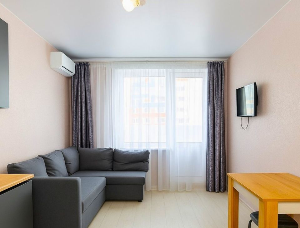 В квартире для проживания остается: двуспальный диван, шкаф для хранения вещей, сплит система для поддержания оптимальной температуры, холодильник, стиральная машина, микроволновка, телевизор и остальное, что видите на фото.
