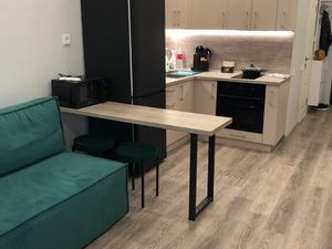 Сдам уютную студию Сдаётся светлая и очень уютная студия с евро ремонтом. Всё чистое, аккуратное, готово к заселению. Идеально для одного человека или пары. О квартире: Общая площадь: 20 кв. м. Этаж: 23 Кондиционер во всей квартире — комфортно в любую погоду. Обстановка и техника: Комната: удобный диван-кровать, большой шкаф, рабочий стол. Кухня: полноценный гарнитур, холодильник, вытяжка, вся необходимая посуда. Расположение: Инфраструктура: через дорогу — супермаркет "Пятёрочка", аптека, отделение банка. В пешей доступности детский сад, школа, фитнес-клуб, университеты. Транспорт: остановка общественного транспорта в двух минутах ходьбы. Звоните чтобы договориться о просмотре!