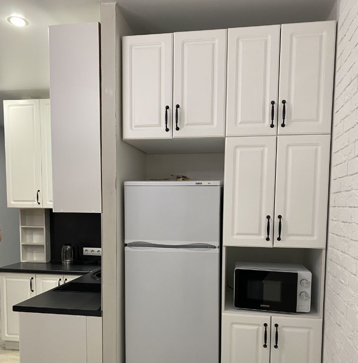 В квартире сделан качественный евроремонт. Студии есть вся необходимая мебель и бытовая техника: кондиционер, холодильник, микроволновая печь, утюг, телевизор и стиральная машина. Санузел совмещённый, оборудован душевой кабиной.